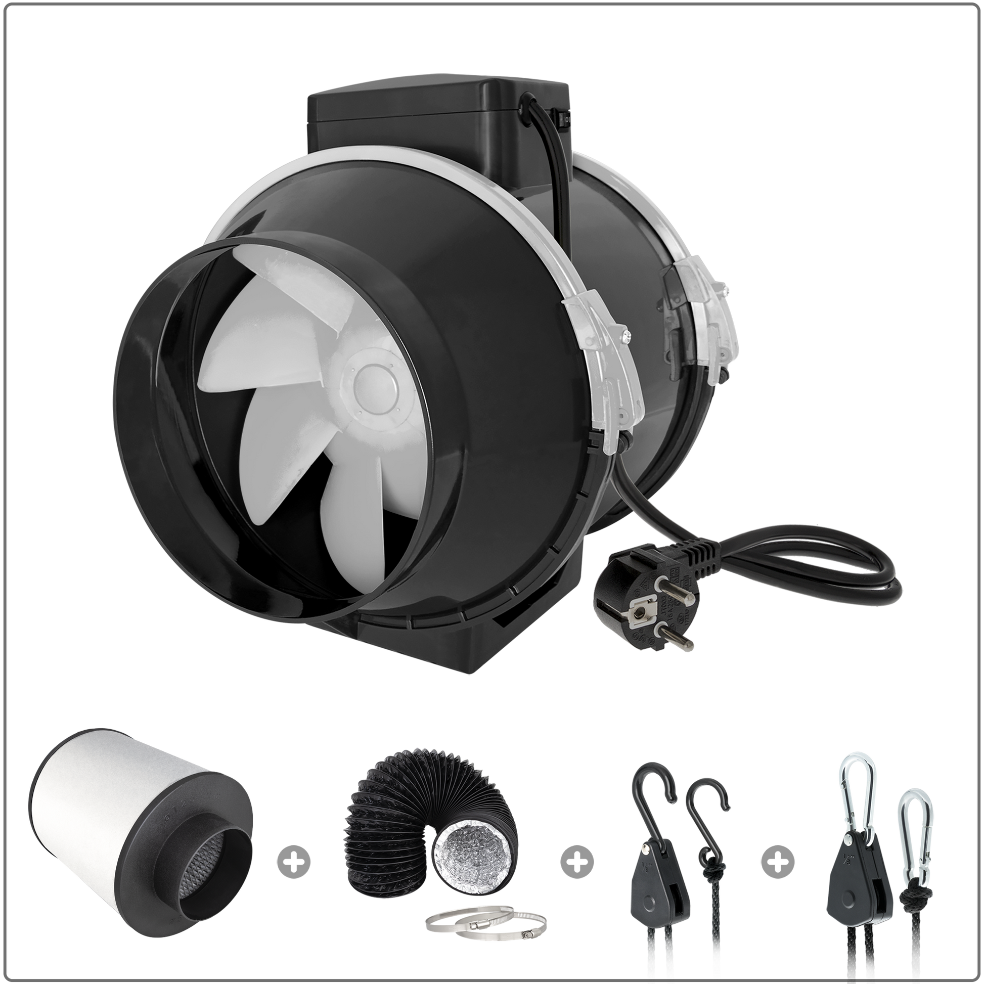 - Umlenkrollen ermöglichen die Befestigung des TT-Dunstabzugsgebläses direkt an den Rohren des Grow-Zeltes. Bestehend aus einem Karabinerhaken aus 100% rostfreiem, verzinktem Stahl, der gegen die feuchte Umgebung im Anbau beständig ist, und einem 1,5 m langen Seil aus 75% Baumwolle und 25% Polyester. Tragkraft bis zu 68 kg.
